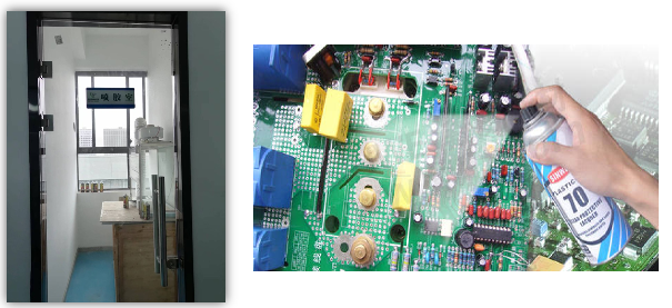 对维修过的焊点、电路板,原三防漆被破坏、产生腐蚀隐患,采用手动方式补喷三防漆。