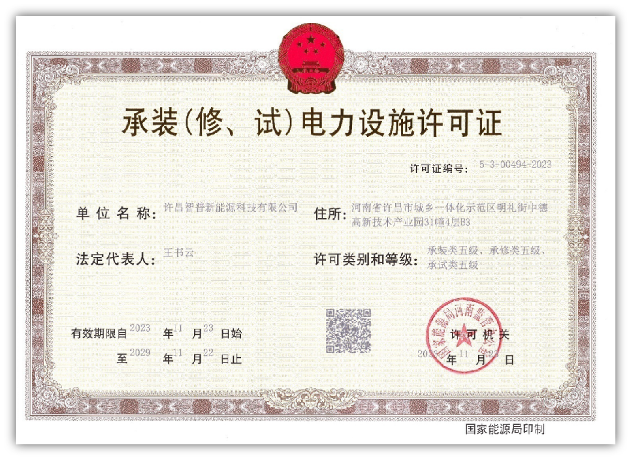 - 承装(修、试)电力设施许可证