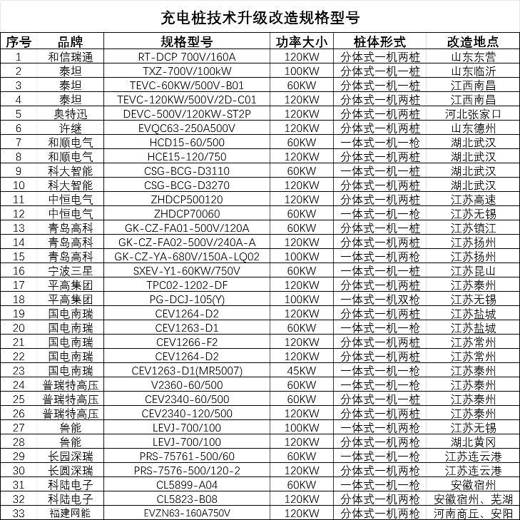 - 更换新型控制器:消除原桩上所有的故障与报警、兼容新老国标车型充电;